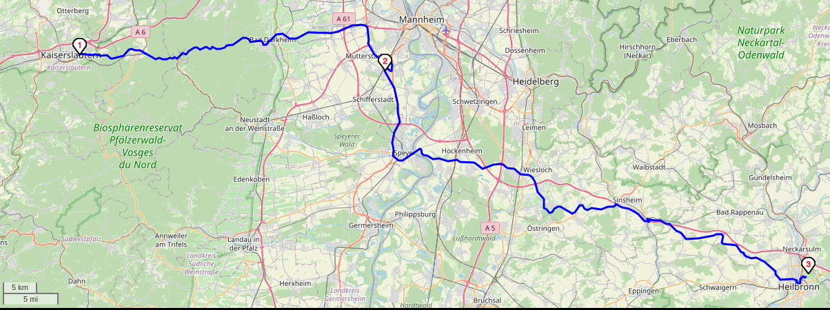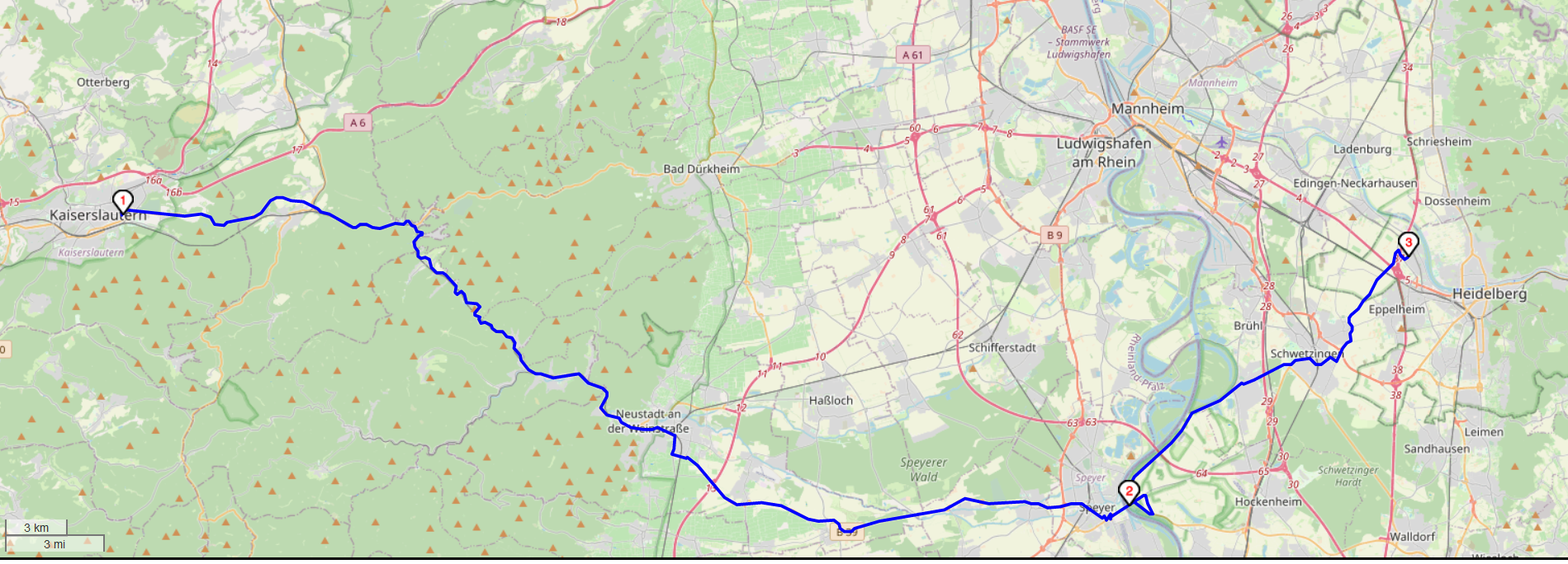 Treffpunkt Mitfahrer-Parkplatz Kaiserslautern-West (an der BAB 6): 14:00 Uhr, Abfahrt 14:10 Uhr