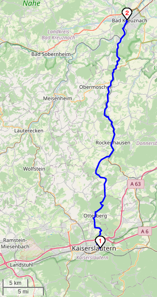 Strecke ca. 62km, Fahrtzeit ca. 1:15 h
