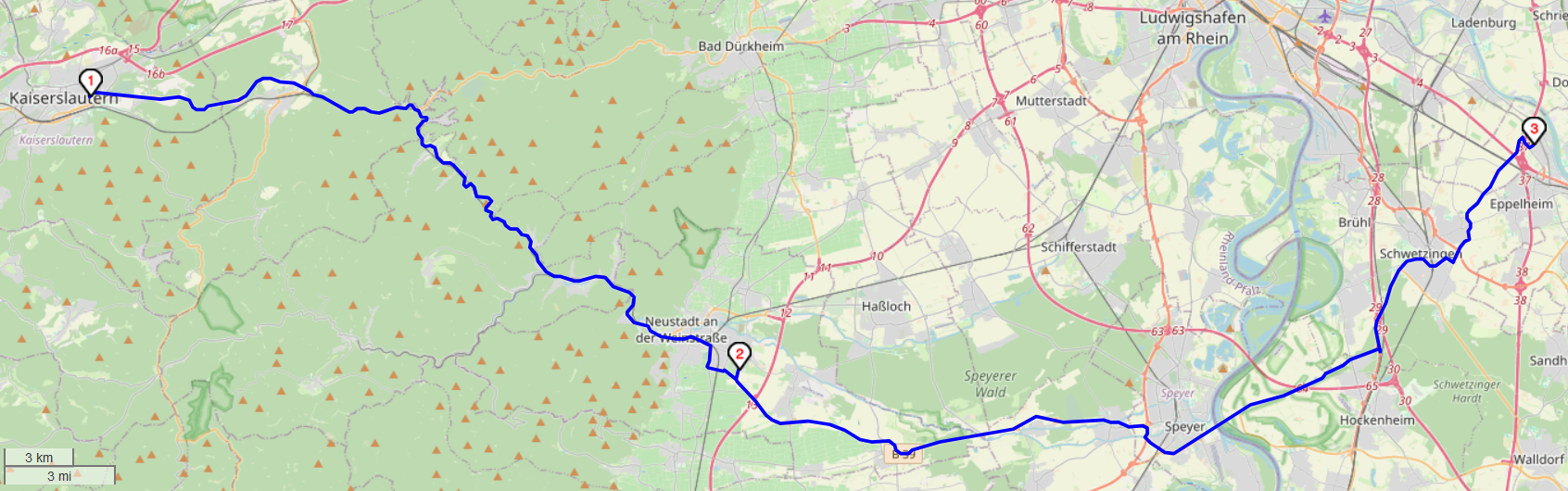Strecke 100 km, Fahrtzeit ca. 1:40 h
