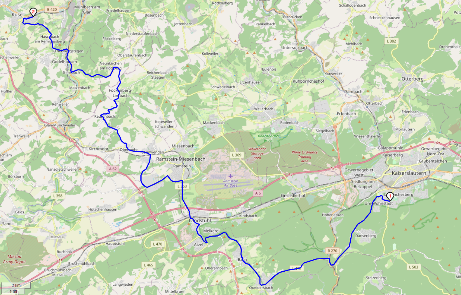 Treffpunkt Mitfahrer-Parkplatz Kaiserslautern-West (an der BAB 6): 14:00 Uhr, Abfahrt 14:10 Uhr