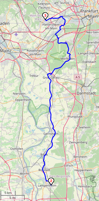 2. Treffpunkt: Kreisel im Südwesten von Bürstadt (unmittelbar an der B44, Kreuz B47): ca. ab 09:30 Uhr