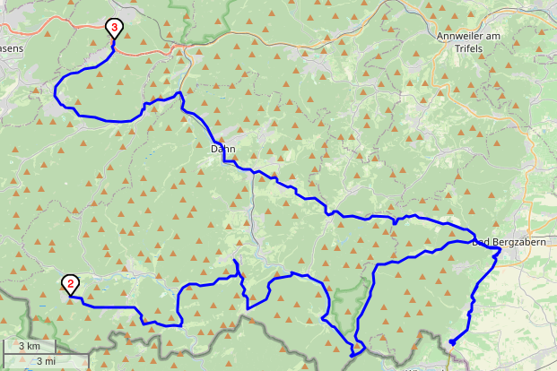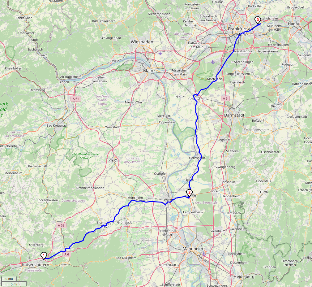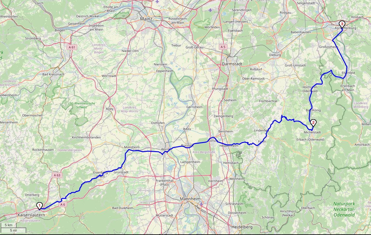 Strecke insg. ca. 165 km, Fahrtzeit insg. ca. 3 h